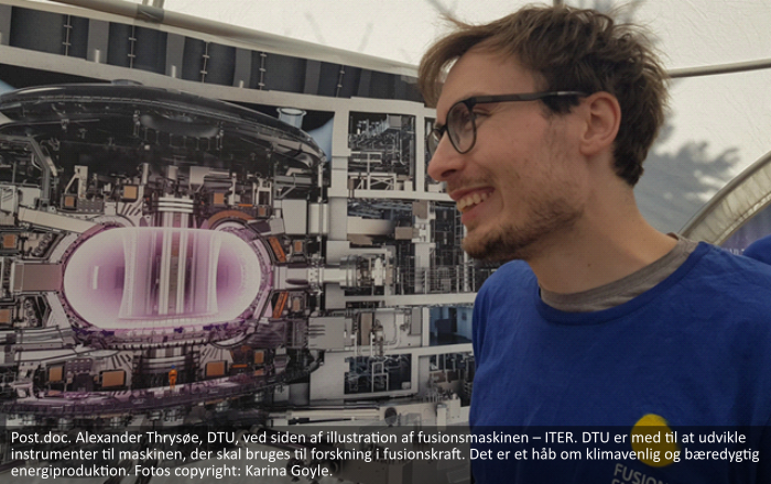 Alexander siger: - Jeg synes, det er vigtigt at komme ud og tale med medborgere i samfundet, som - måske uden at vide det - faktisk bidrager til den fusionsforskning, vi laver. Borgere i Danmark bidrager også til det førnævnte store, internationale ITER-projekt. Det er vigtigt at få afkræftet nogle af de misforståelser, der er rundt omkring, hvor borgerne måske er nervøse for fusionsenergi eller forveksler det med fission.