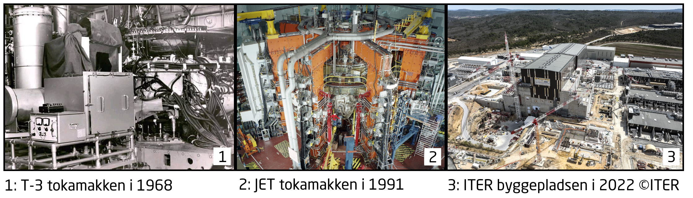 Siden 1920’erne har man vidst, at fusionsprocesser er solens energikilde. Op gennem 1940’erne begyndte de første forsøg på at bygge en fusionsreaktor på Jorden, men man var langt fra at opnå forhold, som muliggjorde hyppige fusionsprocesser. Kort sagt: Fusionsreaktorerne havde ikke en tilstrækkelig ydeevne. Forskellige koncepter blev afprøvet igennem 1950’erne og 1960’erne, og mange forskere var optimistiske. Det viste sig dog, at det var vanskeligere end forventet at indeslutte et plasma med høj energi. Men i 1968 skete der et stort gennembrud: Forskere fra Sovjetunionen demonstrerede med tokamakken T-3, at de kunne opnå plasmatemperaturer på 10 millioner kelvin, hvilket var mere end ti gange så højt som europæiske fusionsmaskiner havde opnået. Tokamakken blev derefter det foretrukne design for fusionsreaktorer, og mange forskellige tokamakker blev konstrueret de følgende år. Et billede af tokamakken T-3 ses på figur 1.