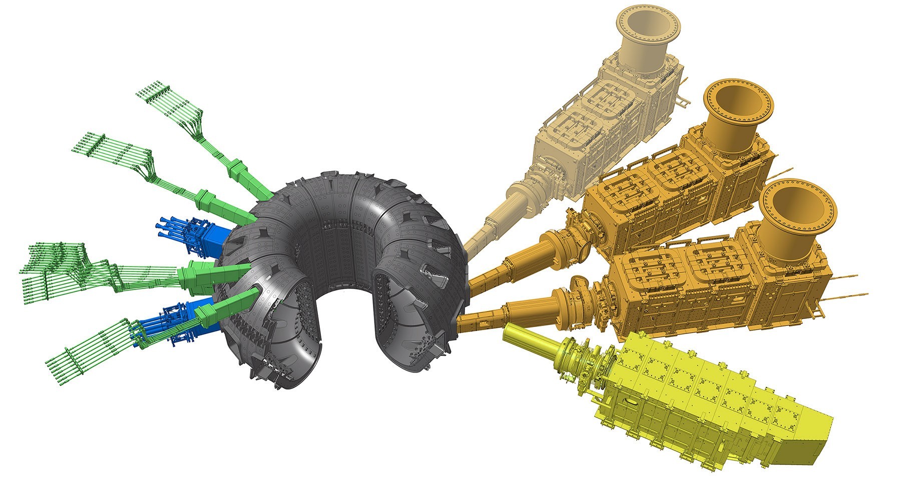 Den anden metode til opvarmning af et plasma er via tilskud af neutrale partikler (neutral-beam injection på engelsk – eller bare NBI). Uden for plasmakammeret er det muligt at accelerere ioner til høje hastigheder. Ionerne, som nu har en høj kinetisk energi, kan efterfølgende neutraliseres og skydes ind i plasmaet. Neutralisering betyder, at elektroner bliver forbundet til de hurtige ioner, som herefter kan opfattes som hurtige, neutrale partikler. I plasmaet bliver de neutrale partikler igen ioniseret grundet den høje temperatur i plasmaet, og de vil kollidere med andre ioner i plasmaet og afsætte deres kinetiske energi. På figuren øverst kan man se NBI-systemet i ITER (farvet orange).